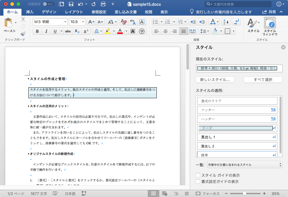 - スタイルウィンドウが表示されたら、選択されているスタイルを確認して、[新しいスタイル]をクリックします。