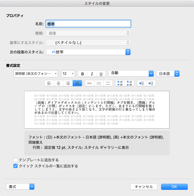 - [スタイルの変更]ダイアログボックスの[OK]ボタンをクリックします。