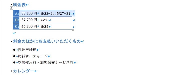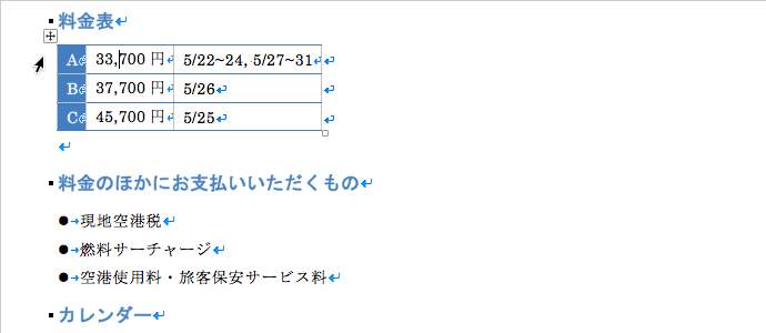表の操作