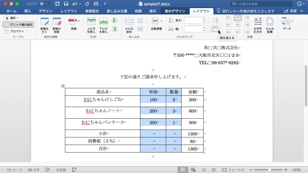- Word 2011:表の挿入と編集|列幅や行幅を均等にそろえるには
