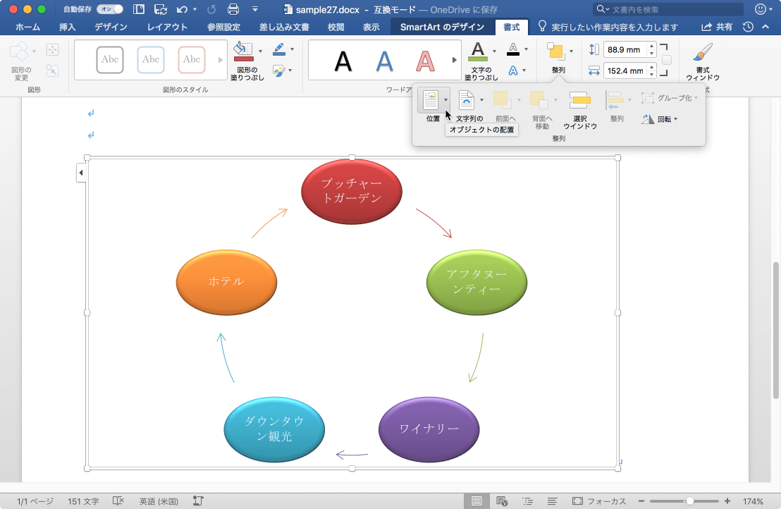 SmartArtグラフィックの配置を変更するには