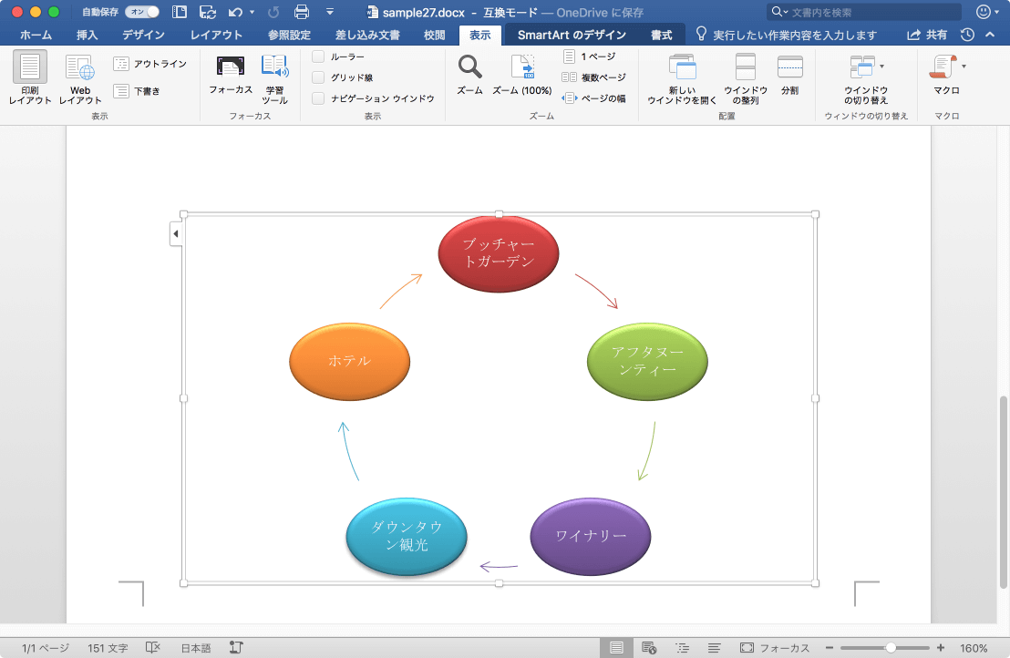 ここでは、SmartArtグラフィックをページの中央下に配置する方法について説明します。