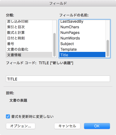 文書タイトルフィールドの挿入