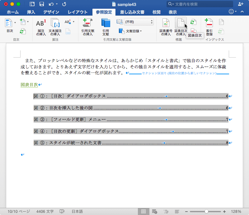 [図表目次]ダイアログボックスの[OK]ボタンをクリックします。