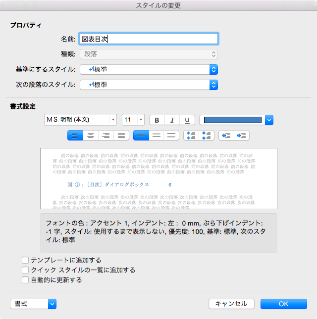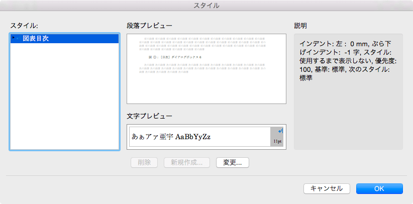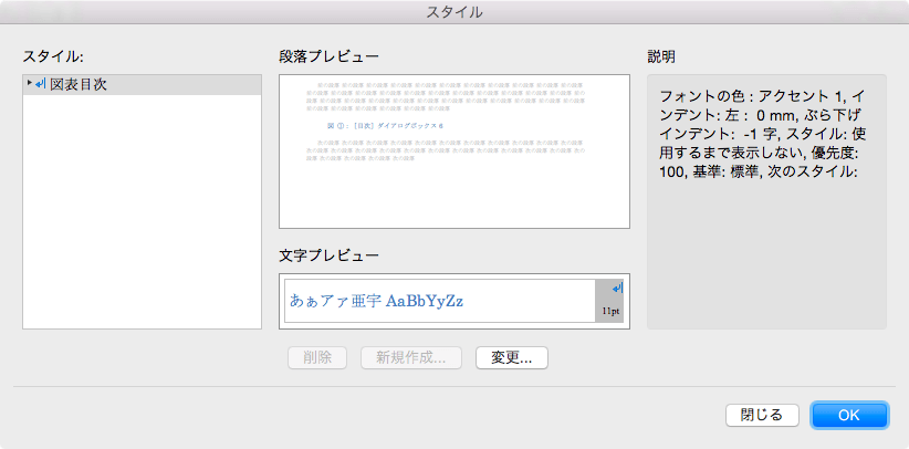 図表目次のスタイルの変更