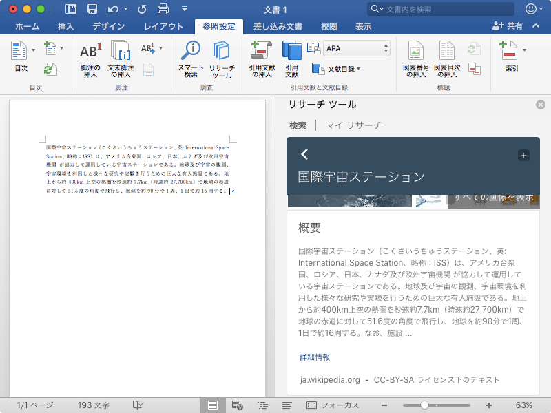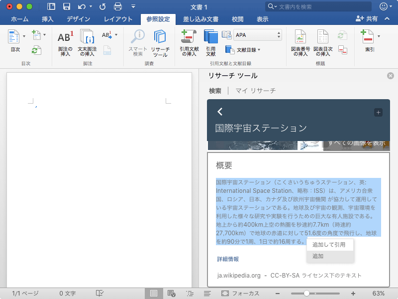 引用文献を含むコンテンツを文書に追加