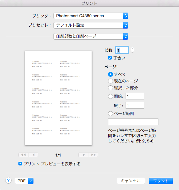 - [すべてのラベルにプリントする]が選択されていることを確認して[印刷]ボタンをクリックします。
