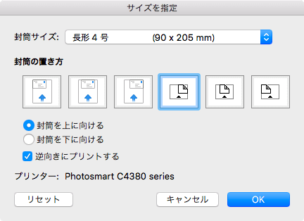 また、封筒の置き方については、用紙トレイの案内に従って、それに合ったものを選択してください。