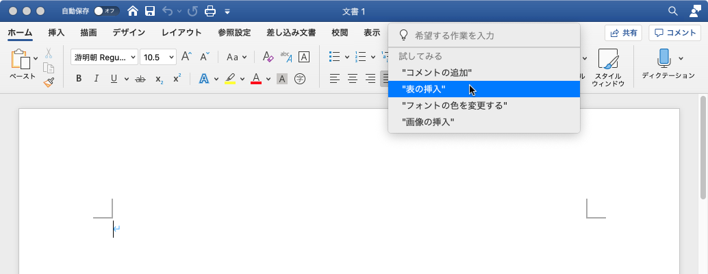 - 一覧に候補が表示されます。ここでは試しに[表を挿入]を選択してみましょう。