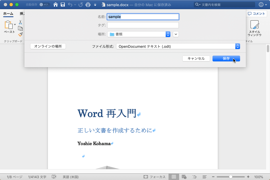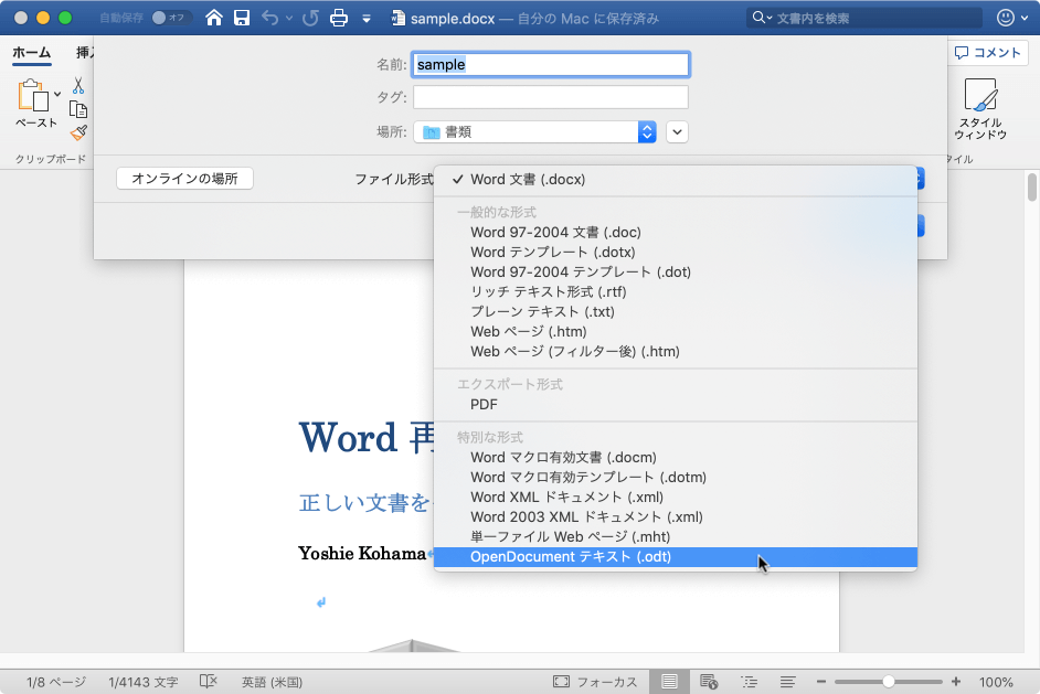 OpenDocumentテキストで保存
