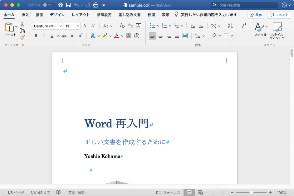- OpenDocumentテキスト形式で保存されました。