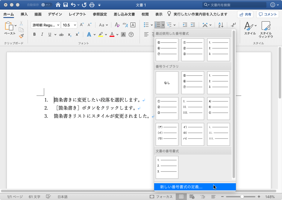 箇条書きの行頭文字や段落番号の書式を定義するには