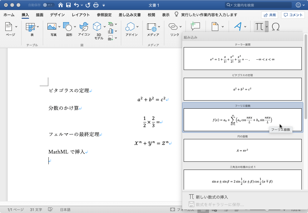 - [フォーマット]メニューの[数式オプション]をクリックします。