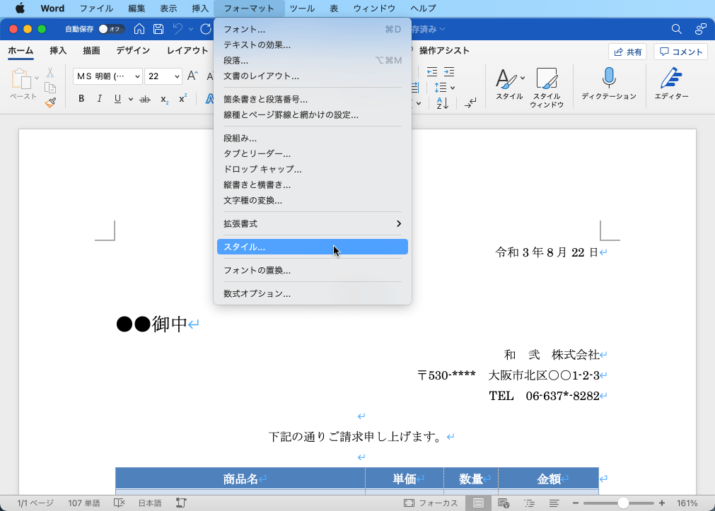 - [フォーマット]メニューの[スタイル]をクリックします。