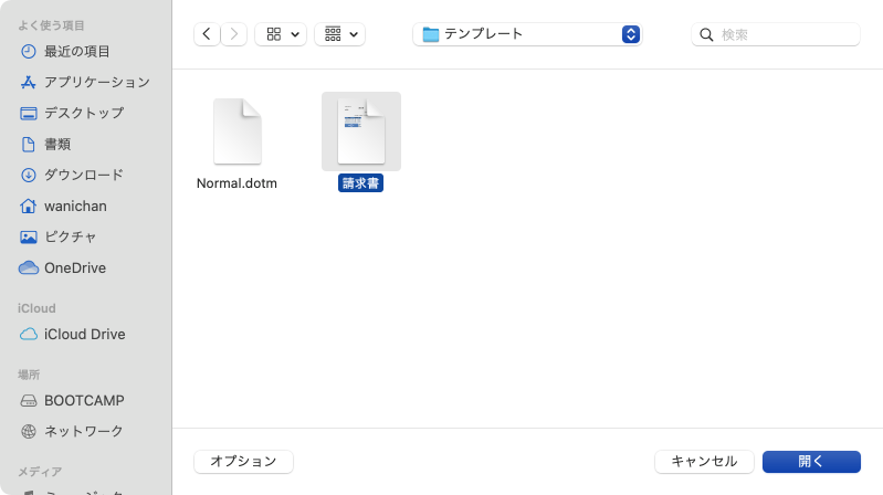 - コピー先のテンプレートを選択して[開く]ボタンをクリックします。