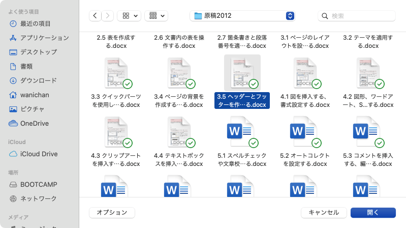 - インポート元のファイルの場所を指定し、対象となるインポート元ファイルを選択して[開く]ボタンをクリックします。
