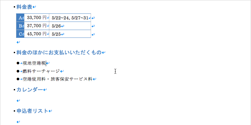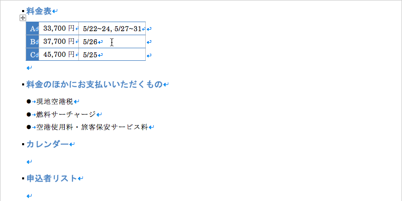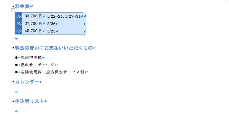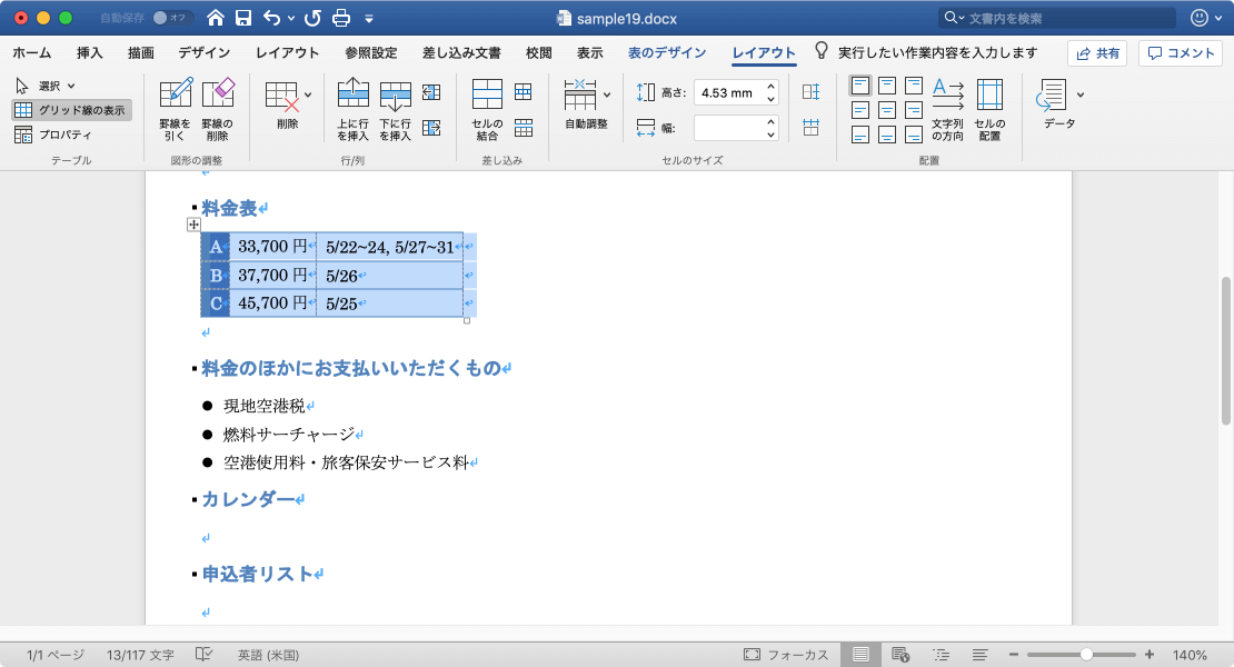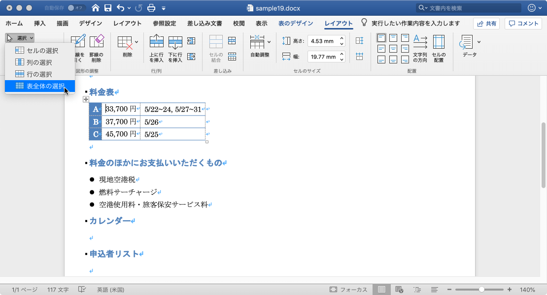 Word 2019 for Macで表全体を選択する方法は以下の3通りです。