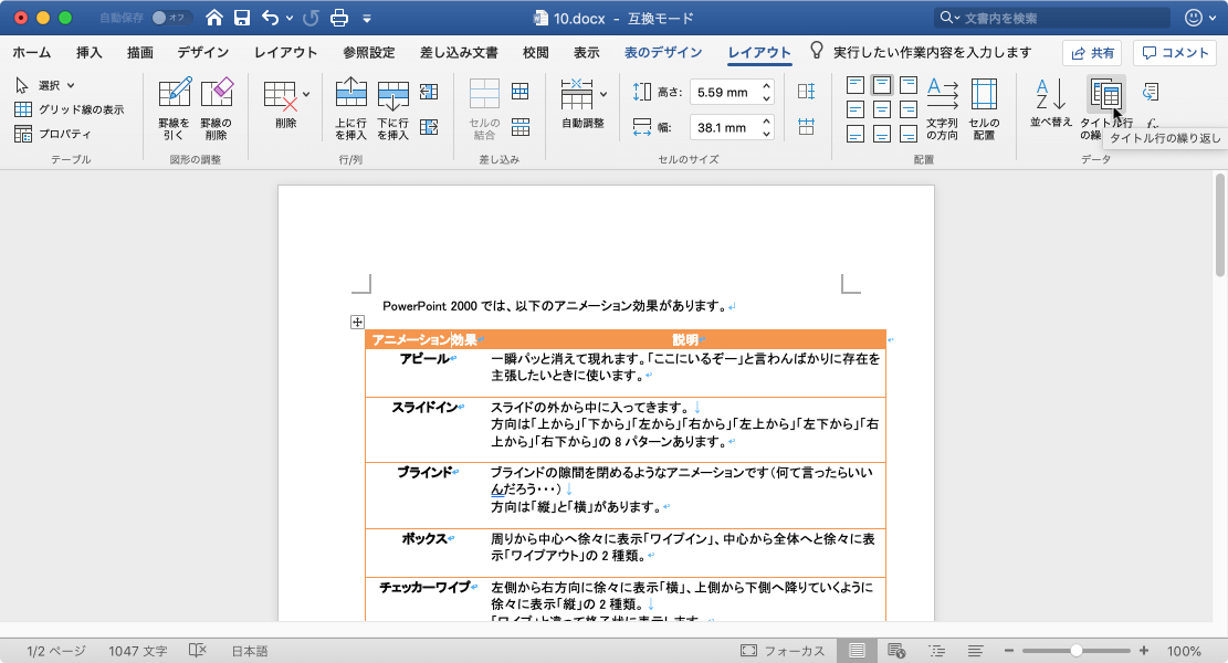 - Word 2016 for Mac:表の挿入と編集|2ページ目以降もタイトル行を表示するには