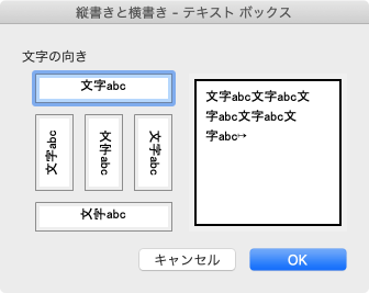 [縦書きと横書きのオプション]を選択すると、[縦書きと横書き - テキストボックス]ダイアログボックスが表示されます。