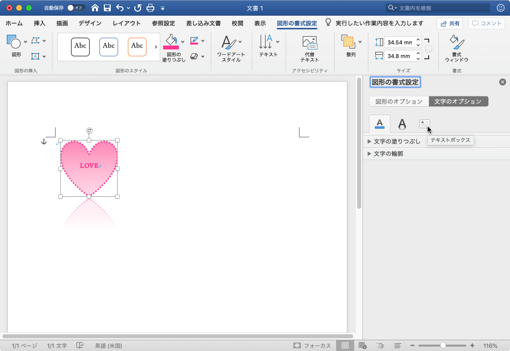 - 対象となる図形を選択してshift+command+1キーで[図形の書式設定]ウィンドウを開きます。
