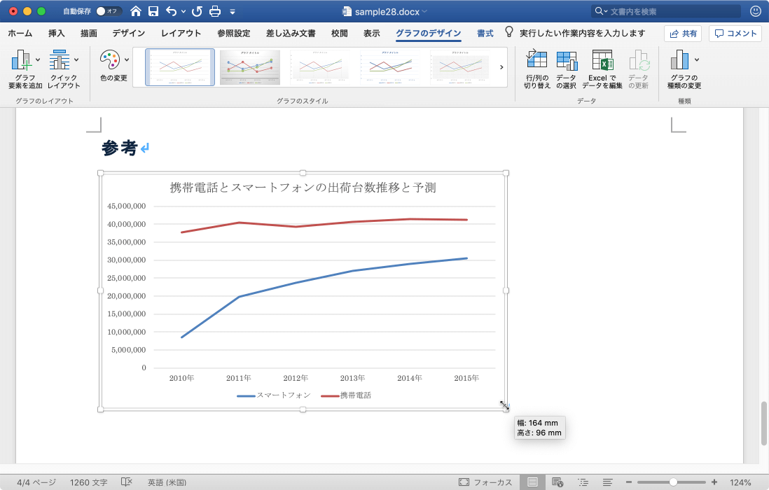 グラフのサイズを変更するには