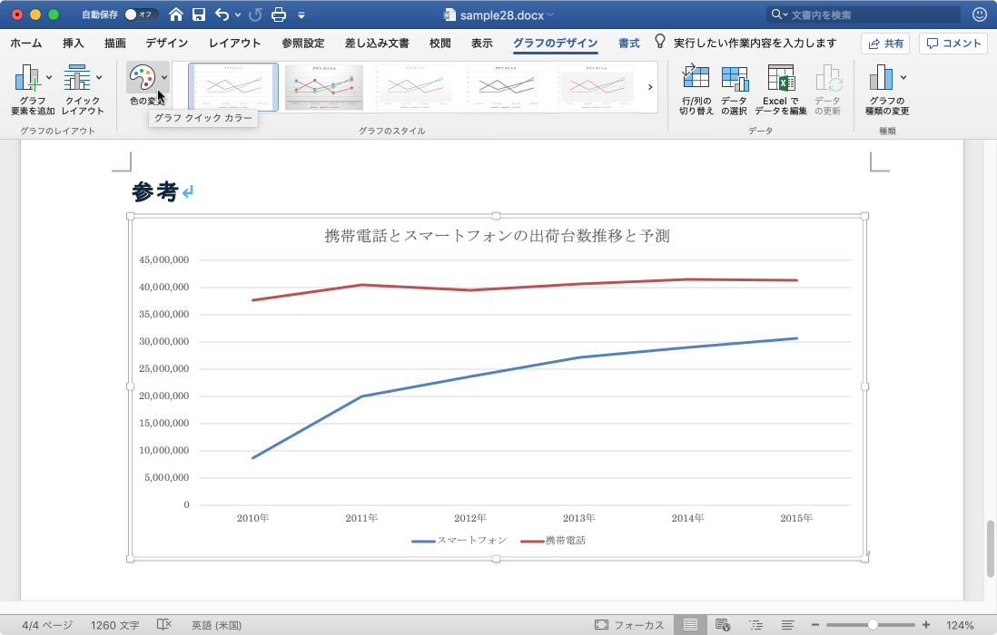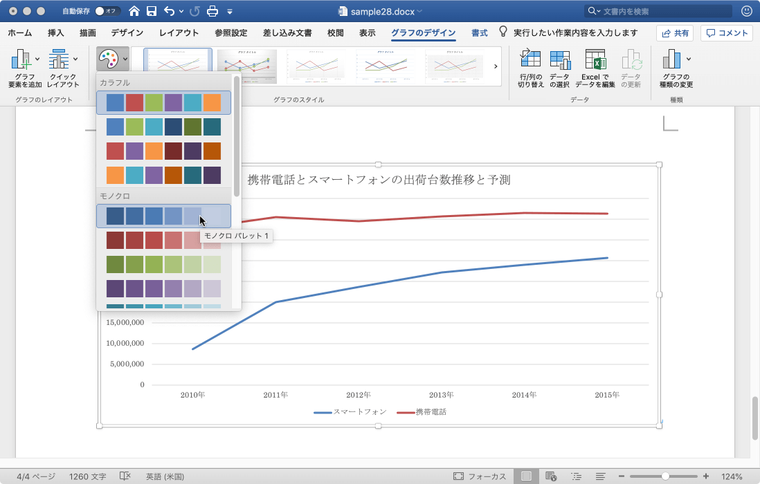 - [グラフのスタイル]グループの[色の変更]をクリックします。
