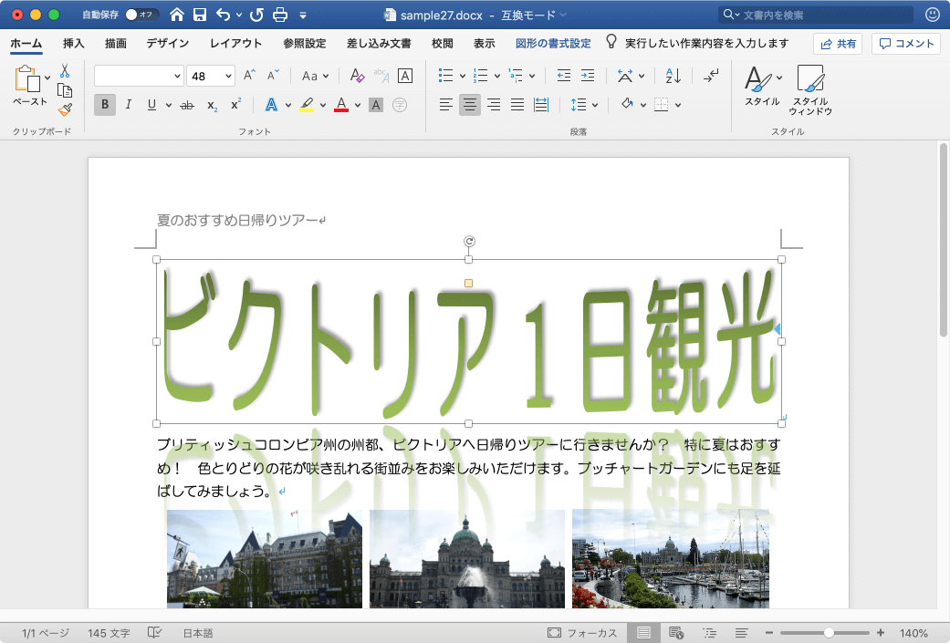 ワードアートの挿入と書式設定