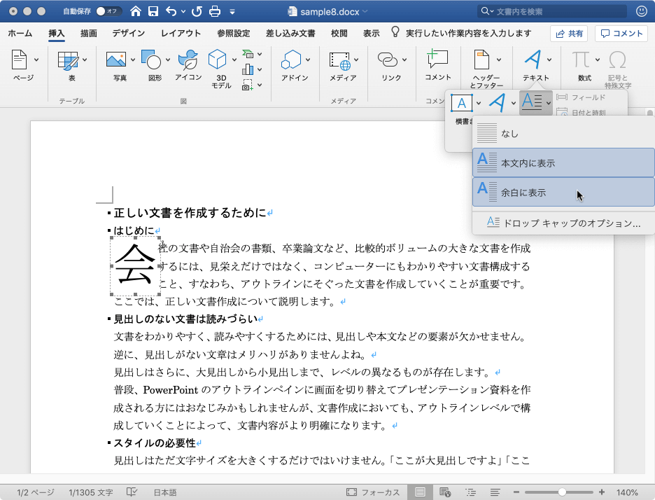 ドロップキャップの挿入