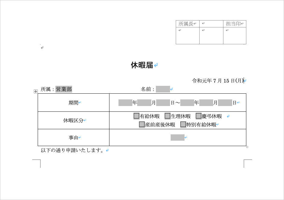 現在の日付フィールドを挿入するには