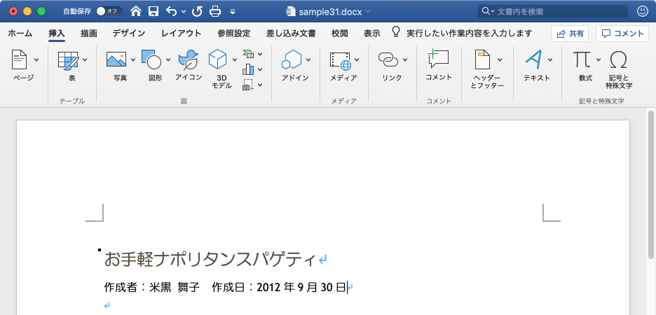 文書の作成日時の挿入