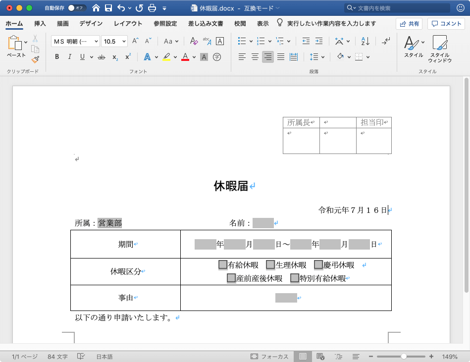 ※執筆環境:Microsoft Word for Mac バージョン 16.28