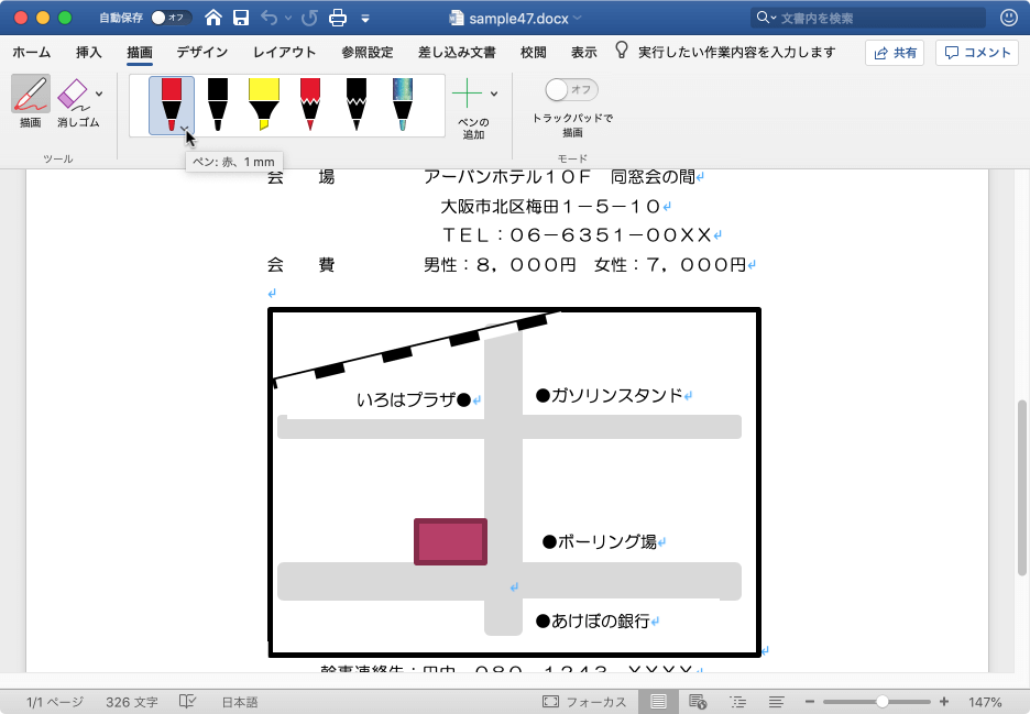 - [描画]タブの目的のペンを選択します。