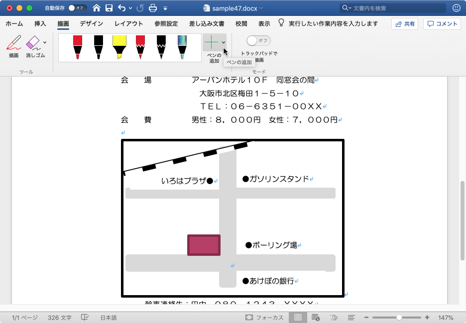- 描画ツールの右側の[ペンの追加]をクリックします。