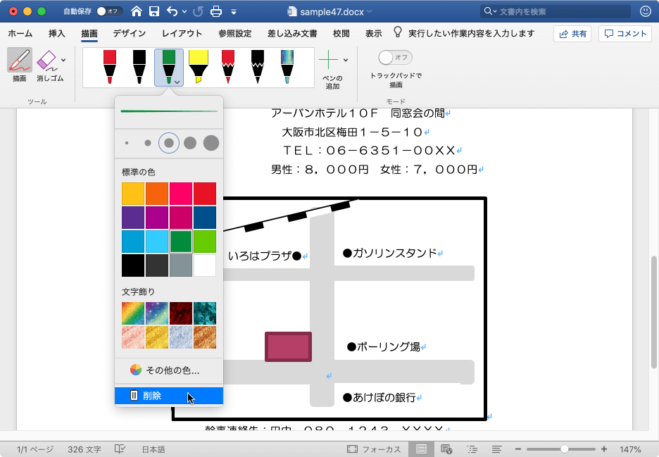 - ペンが削除されました。