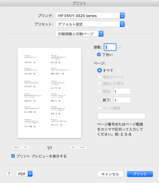 - [プリント]ダイアログボックスの[プリント]ボタンをクリックします。