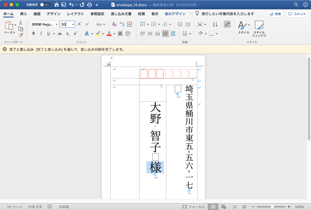 宛名の文字を大きくする