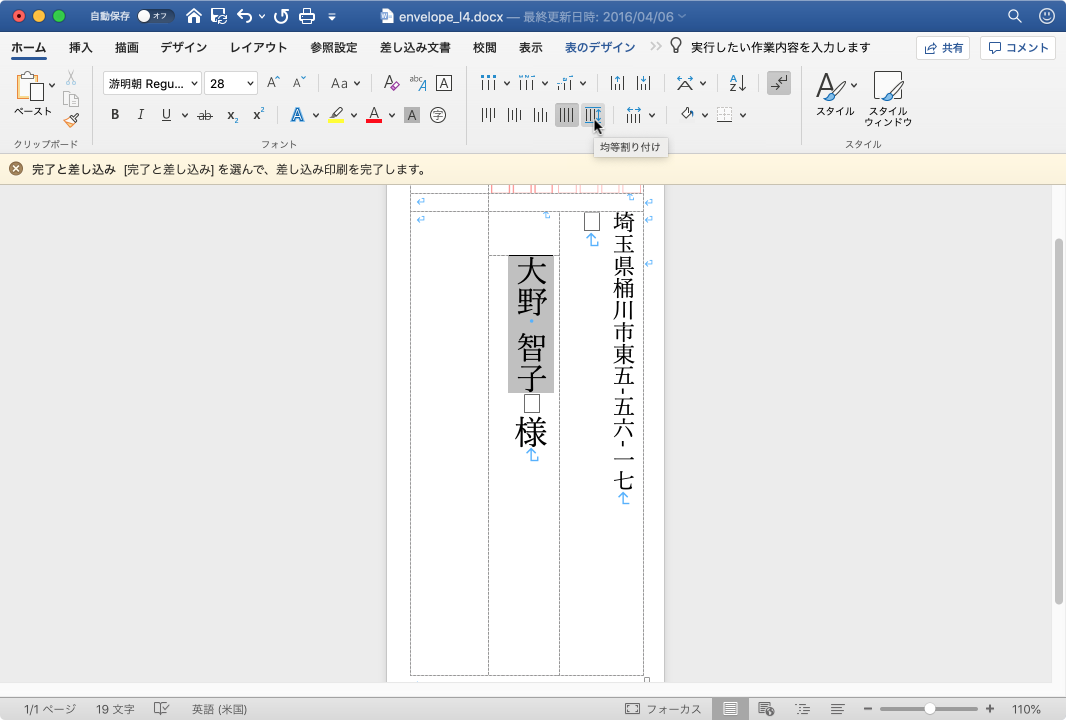 宛名を均等割り付けする
