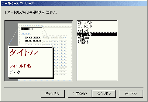 - レポートのスタイルは「フォーマル」を選択して、[次へ]ボタンをクリックします。