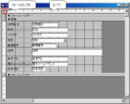 デザインビューのフォーム画面を確認してみよう