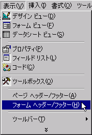 メニューバーから操作する場合は、[表示(V)]→[フォーム ヘッダー/フッター(H)]または[ページヘッダー/フッター(A)]をクリックしてくださいね。
