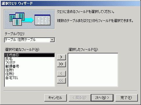 を押すか、選択したいフィールドをダブルクリックすると選択できます。