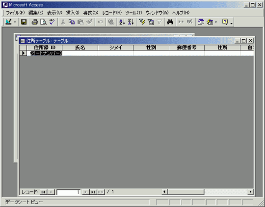 | 新しく入力できるレコード | 何も入っていない空のレコードです。ここで新規データを入力します。 |
