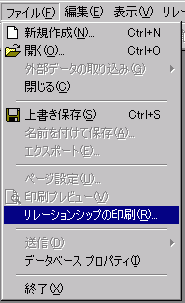- メニューバーより[ファイル(F)]→[リレーションシップの印刷(R)...]をクリックします。