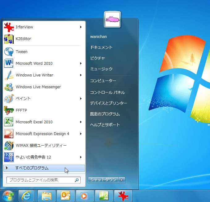 - [スタート]ボタンをクリックし、[すべてのプログラム]を選択します。