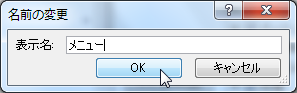 - [名前の変更]ダイアログボックスの[表示名]ボックスに、変更したい表示名を入力し、[OK]ボタンをクリックします。