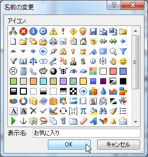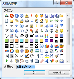 - [名前の変更]ダイアログボックスの[表示名]ボックスに変更したい名前を入力して、[OK]ボタンをクリックします。