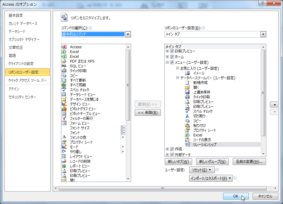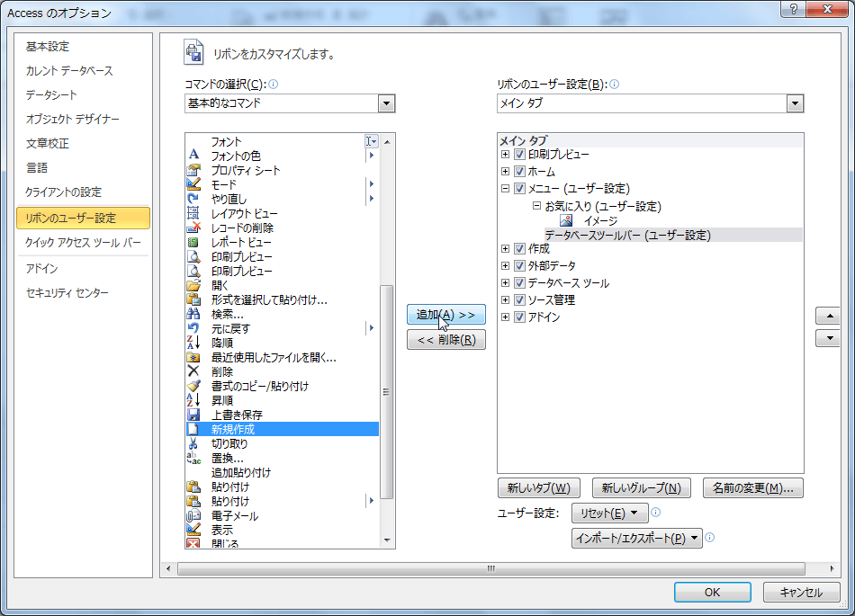 ただし、Access 2003にあって、Access 2010にないコマンドがあるので注意してください。