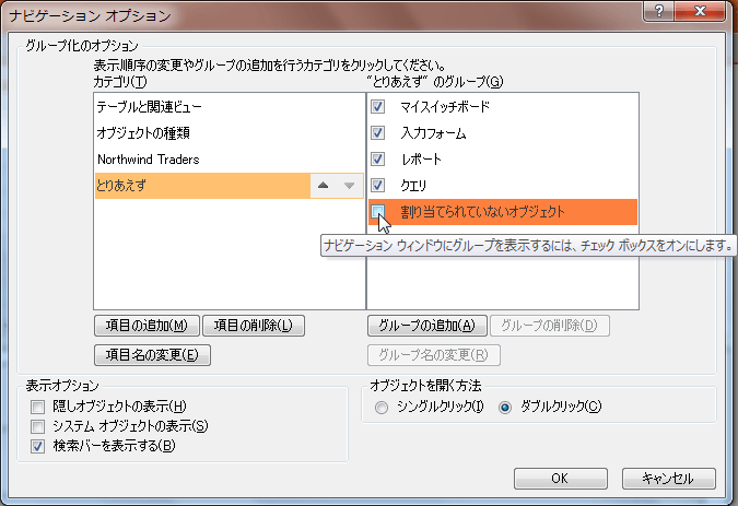 - [割り当てられていないオブジェクト]グループがナビゲーションウィンドウから非表示になりました。