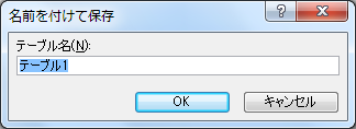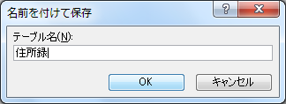 - 未保存の場合は、テーブルの保存画面が表示されるので、テーブル名を入力し、[OK]ボタンをクリックします。