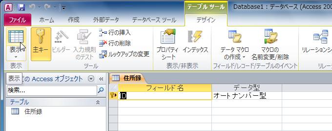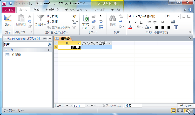 - もう一度[表示]グループの[表示]をクリックすると、データシートビューに戻ります。